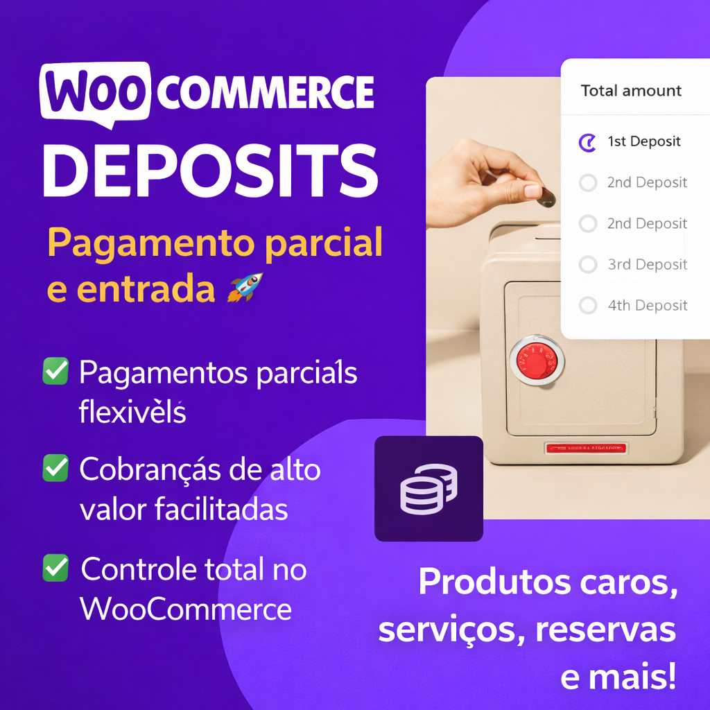 O WooCommerce Deposits é um plugin profissional que permite oferecer pagamentos parciais, sinal ou entrada em produtos e serviços no WooCommerce, tornando sua loja mais flexível, acessível e lucrativa.