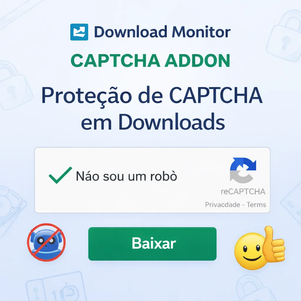 O Download Monitor Captcha Addon é a muralha digital que fica de guarda na porta dos seus arquivos. Integrado ao plugin Download Monitor, ele adiciona um sistema inteligente de CAPTCHA antes do download, garantindo que somente visitantes reais atravessem o portão enquanto robôs, scripts automáticos e caçadores de links ficam do lado de fora batendo na tranca. 🔐🤖