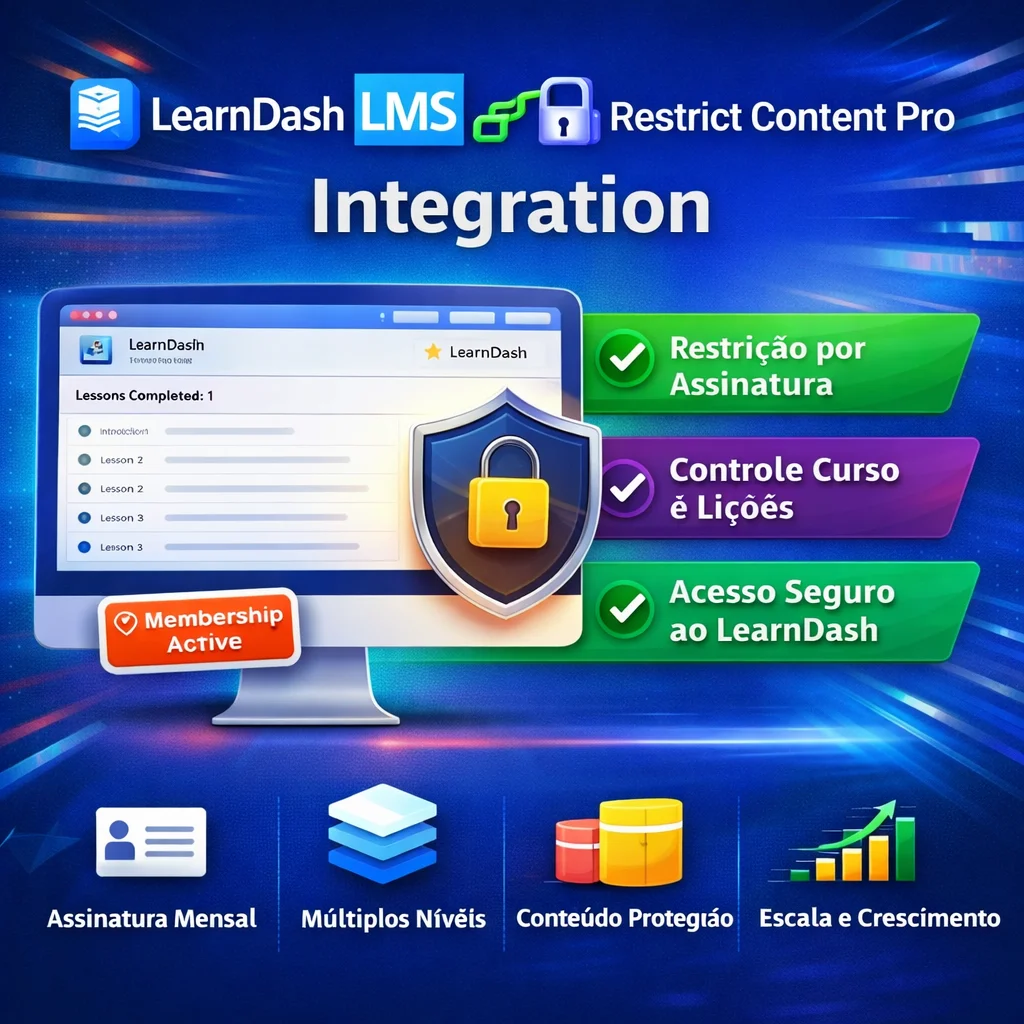 Ao combinar o LearnDash com o Restrict Content Pro, você oferece uma experiência mais profissional e organizada, onde cada aluno vê apenas o conteúdo que tem permissão para acessar 👥✨.