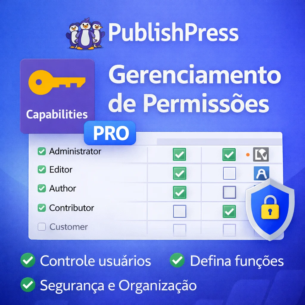 O PublishPress Capabilities PRO é um plugin avançado para gerenciamento de permissões e papéis de usuários no WordPress, ideal para sites com múltiplos autores, equipes editoriais, portais de conteúdo, lojas virtuais e projetos corporativos.
