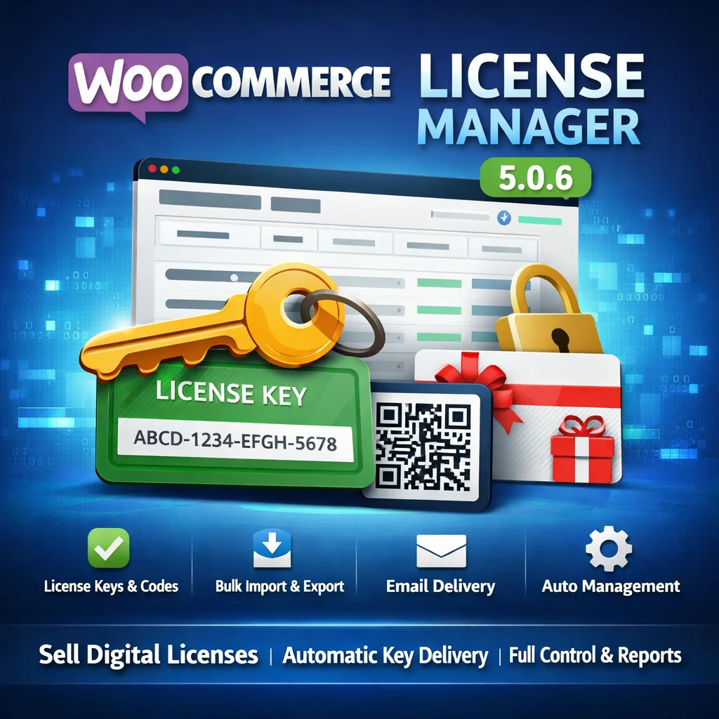 O WooCommerce License Manager 5.0.6 é um plugin WordPress robusto e altamente funcional que transforma sua loja WooCommerce em um sistema profissional de gestão e distribuição de chaves de licença, códigos PIN, cartões-presente e outros tipos de licenças digitais. Com ele, você pode vender produtos que exigem entrega de licença após a compra, como software, temas, jogos ou serviços com ativação por chave, tudo de forma automatizada e integrada ao fluxo de checkout do WooCommerce.