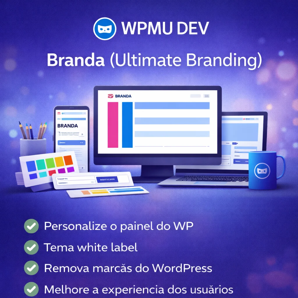 O WPMU DEV Branda (Ultimate Branding) é um plugin completo de white label e personalização do WordPress, ideal para agências, freelancers e empresas que desejam entregar projetos com identidade própria, sem qualquer referência ao WordPress padrão 🔧✨